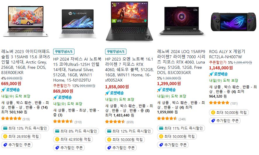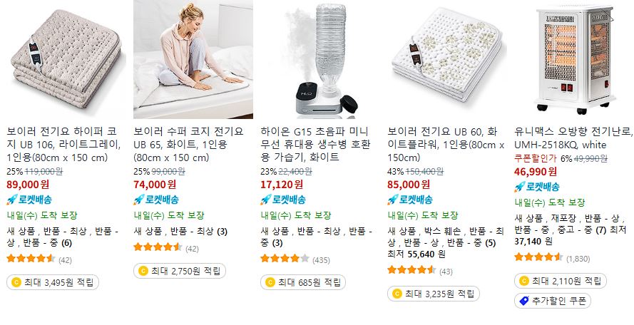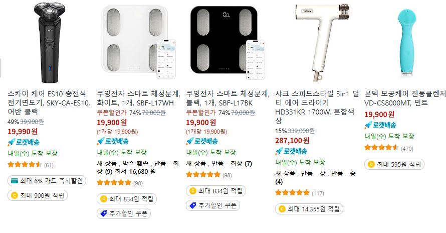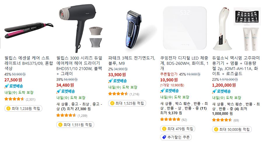 할인 품목 : 노트북, 티비, 헤어드라이기, 충전기 등