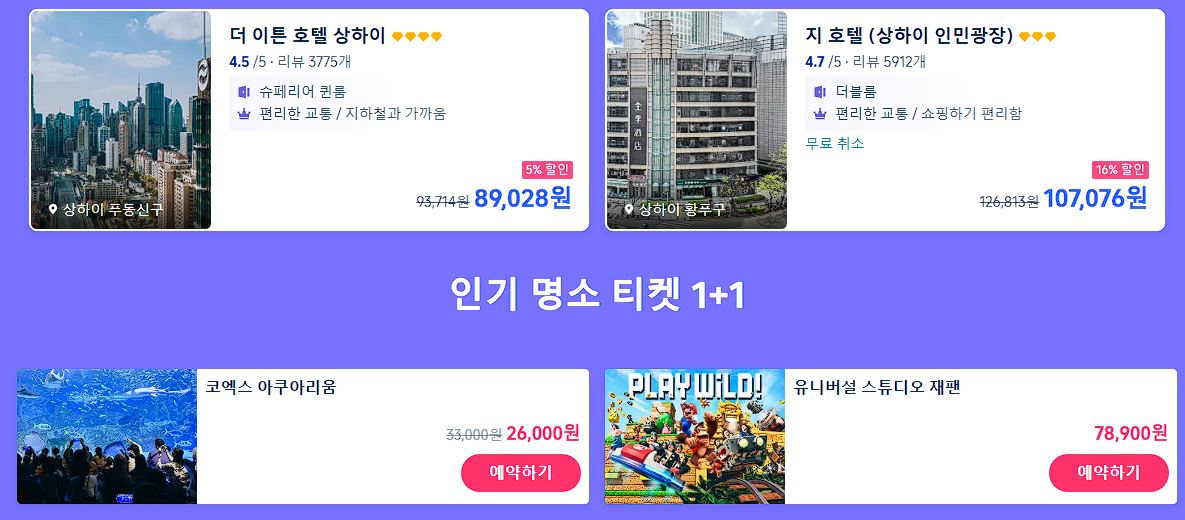 할인 품목 : 항공권, 숙박업소 등