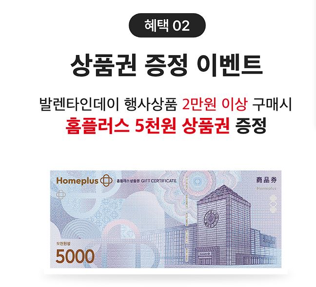 발렌타인데이 행상 상품 2만원 이상 구매시 홈플러스 5천원 상품권 증정