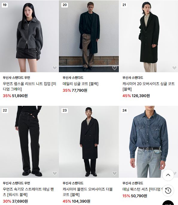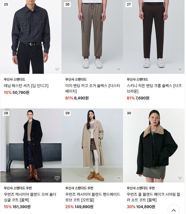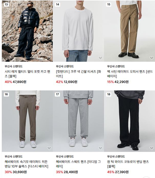 무신사 스탠다드 다양한 제품을 할인 판매하네요.