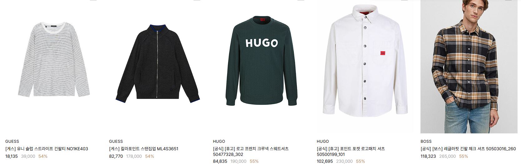 할인 품목 : 자켓, 맨투맨, 셔츠 등