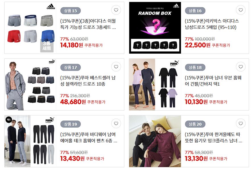 아디다스/푸마 언더웨어 할인 이벤트 정보 포스팅입니다.