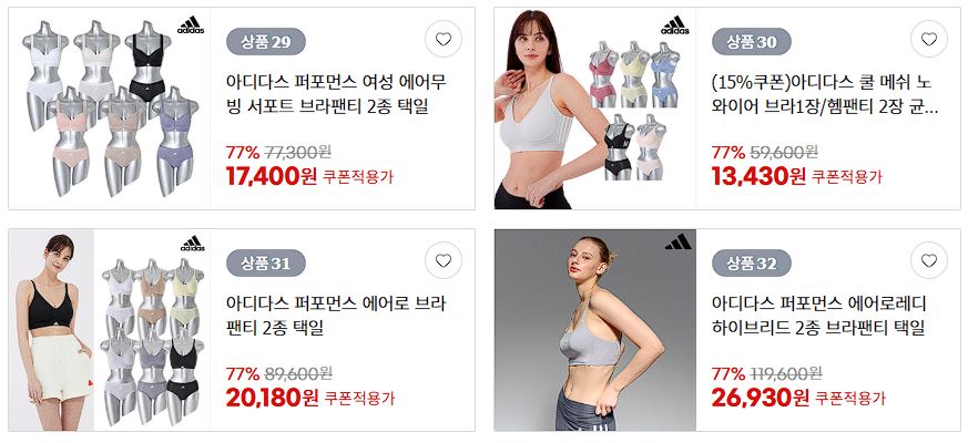 할인 품목 : 드로즈, 브라, 홈웨어 등