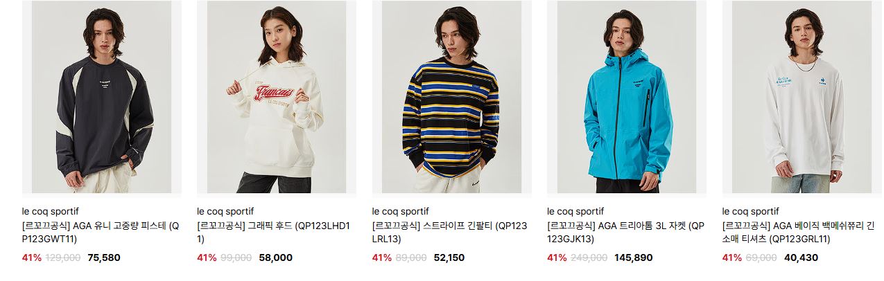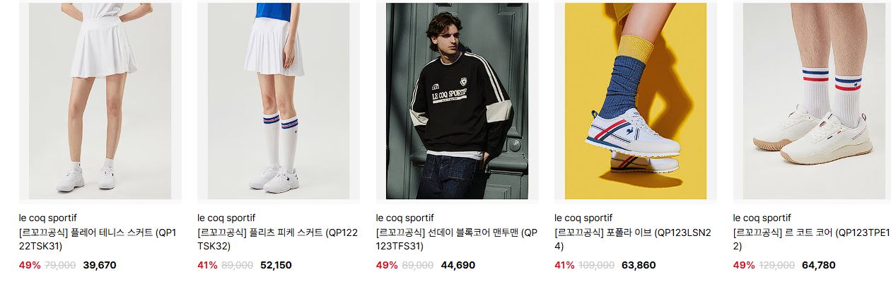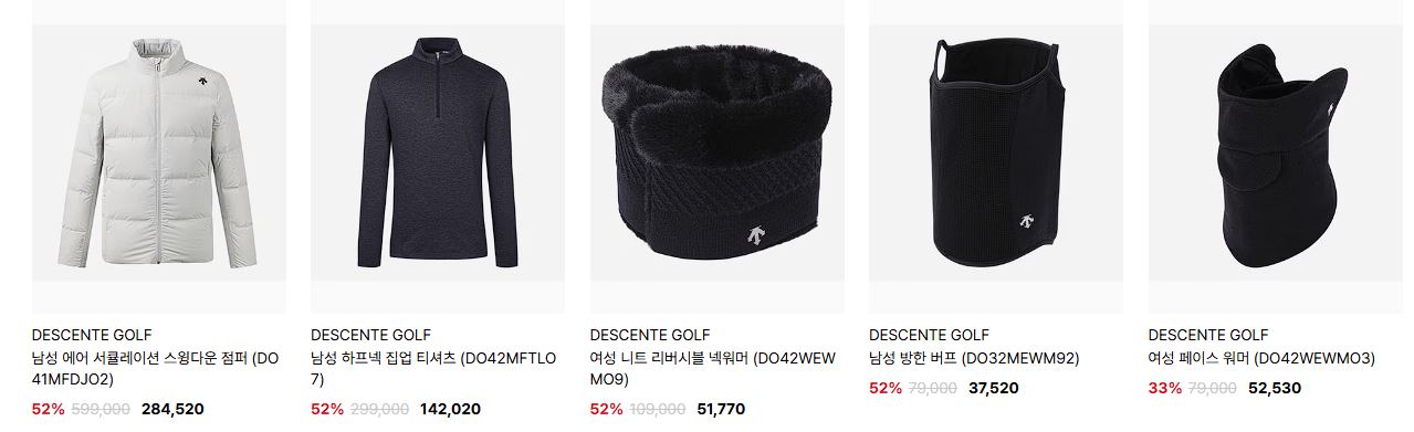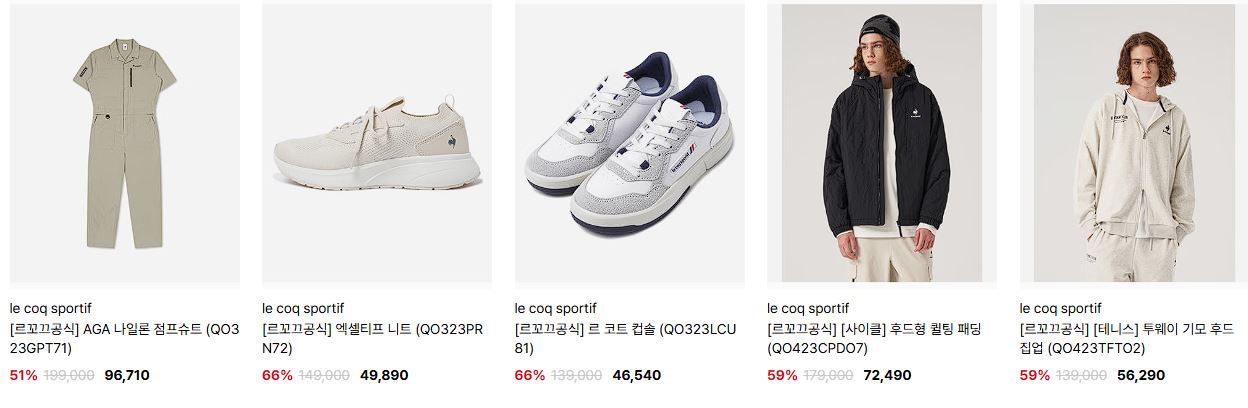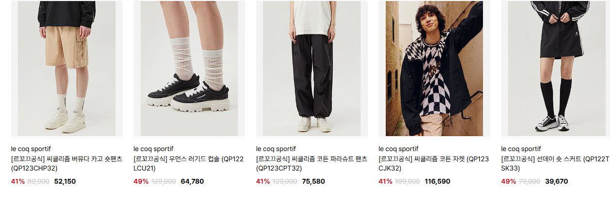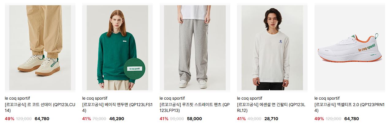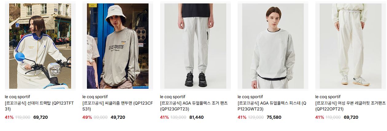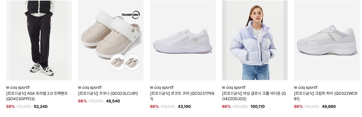 할인 품목 : 티셔츠, 팬츠, 운동화 방한용품 등
