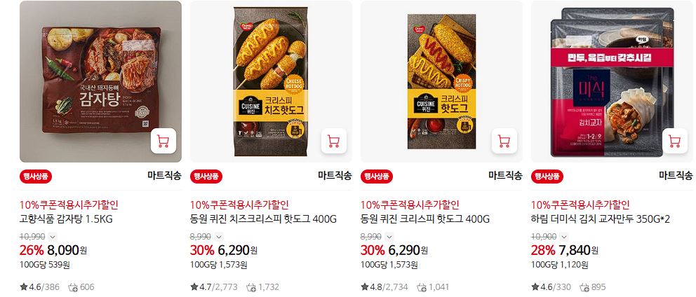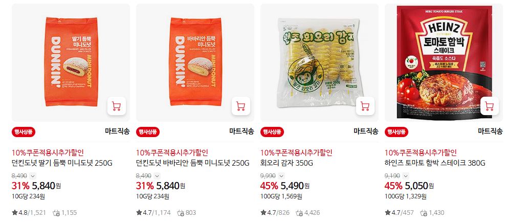 할인 품목 : 만두, 핫도그, 볶음밥, 도넛 등