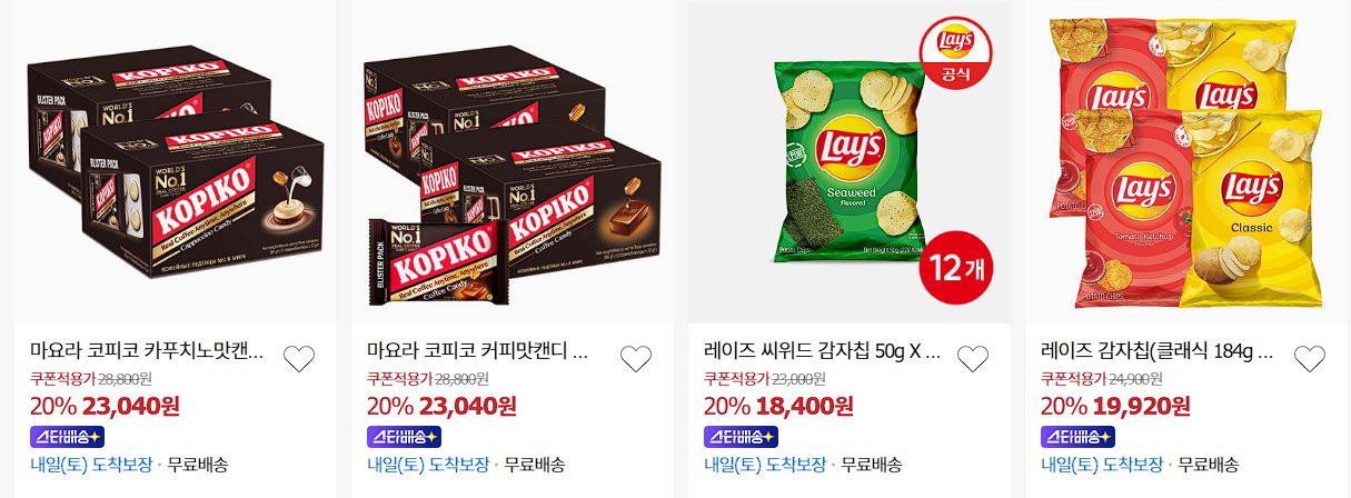 할인 품목 : 초콜렛, 음료, 냉동식품 등
