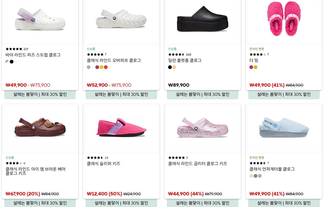 크록스 다양한 제품을 할인 판매하네요.