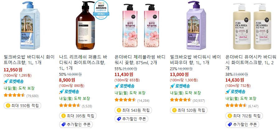 할인 품목 : 바디워시, 칫솔, 바디로션, 샴푸 등