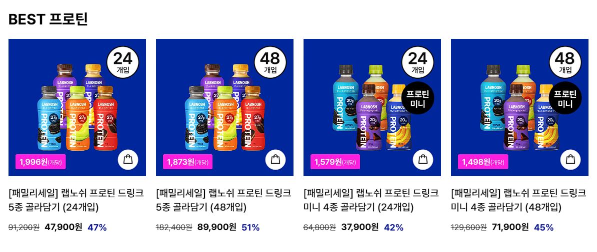 프로틴 드링크 개당 1873원 등