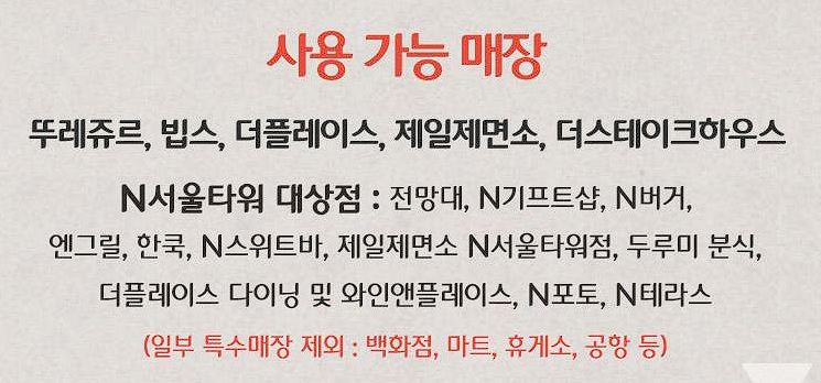 사용처 : 뚜레쥬르, 빕스, 제일제면소 등
