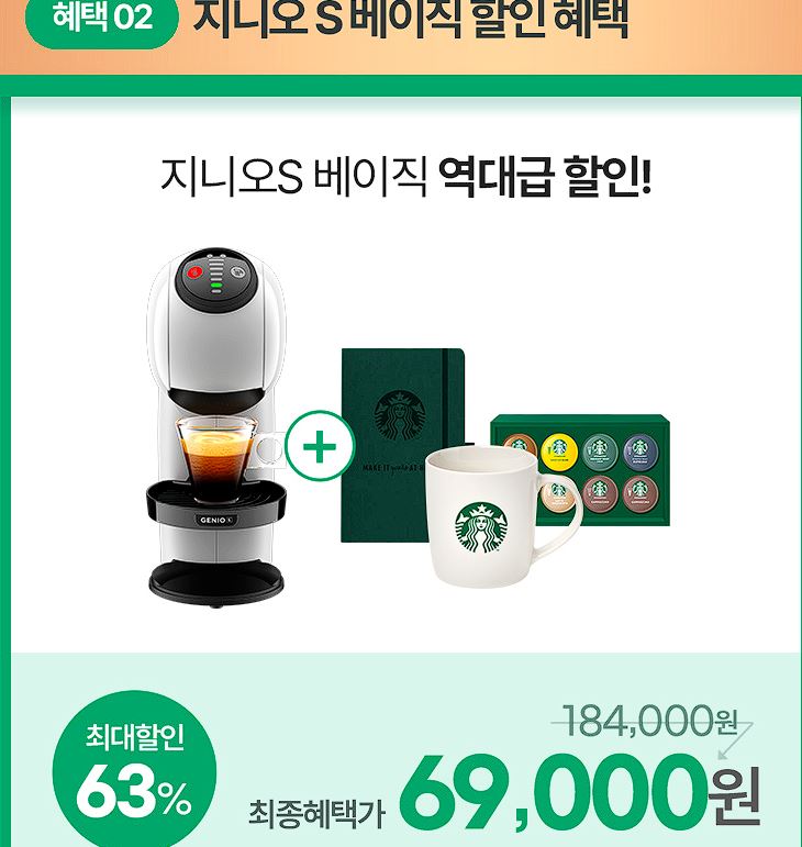 돌체구스토 캡슐커피머신 지니오S 베이직+스벅3종 할인 정보 포스팅입니다.