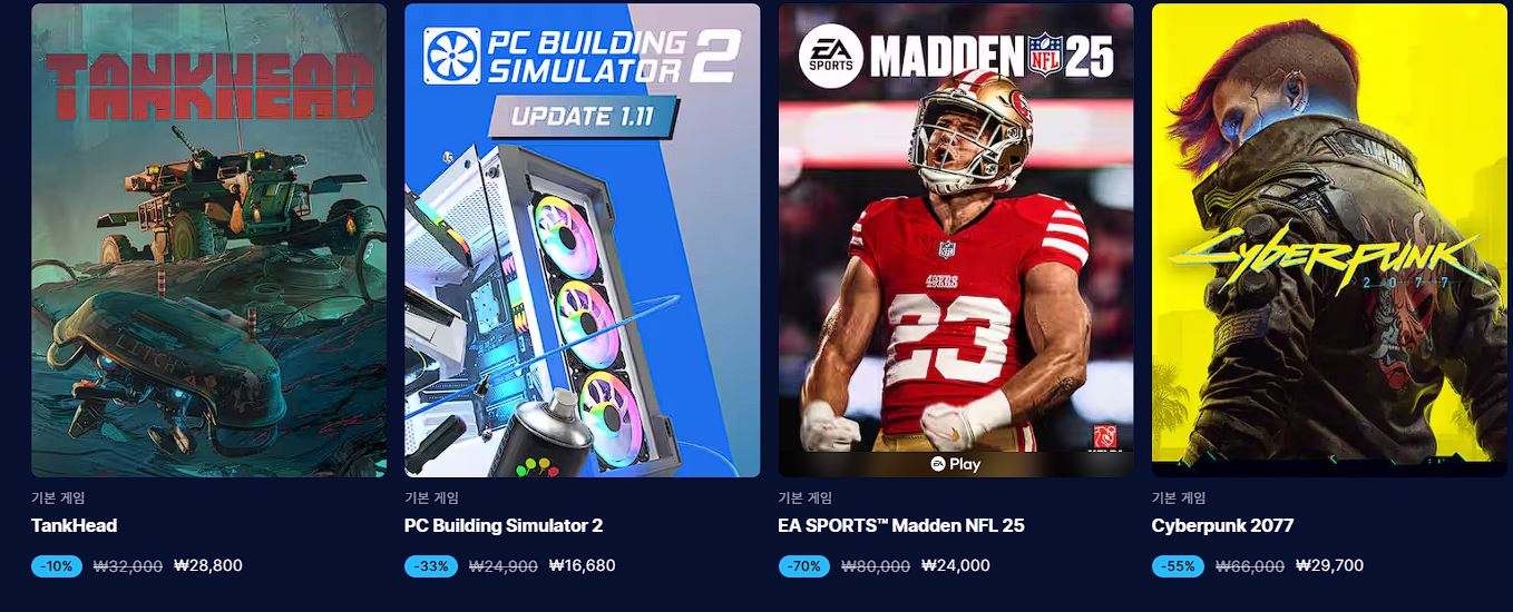 에픽게임즈 다양한 게임을 할인 판매하네요.