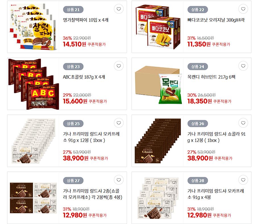 할인 품목 : 몽쉘, 칙촉, 드림카카오 등