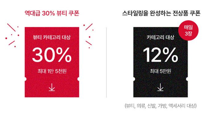 할인 품목 : 화장품, 뷰티 디바이스 등