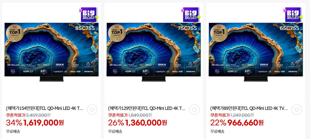 TCL 다양한 제품을 할인 판매하네요.