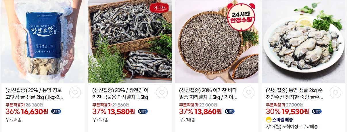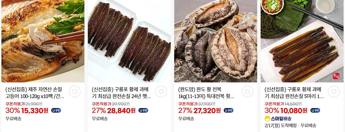 할인 품목 : 전복, 오징어, 멸치, 과메기 등