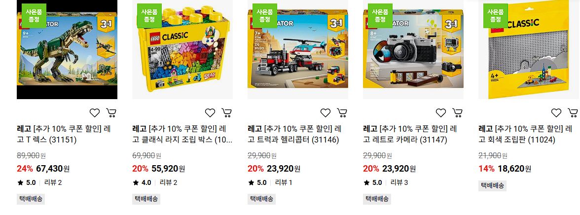 할인 품목 : 블랙팬서, 동물의숲, 닌자고 등