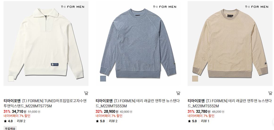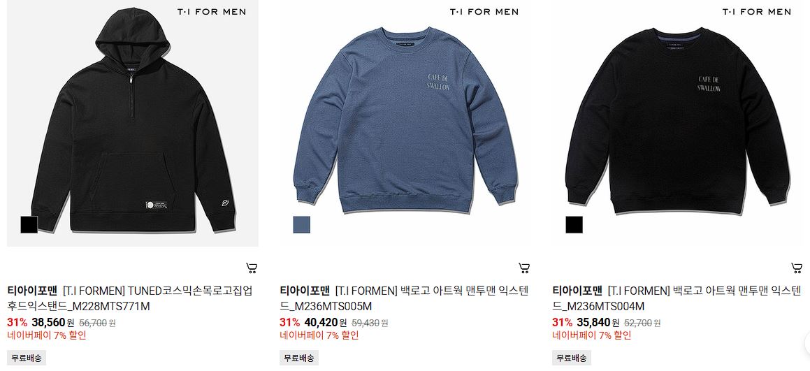 할인 품목 : 셔츠, 맨투맨, 자켓 등