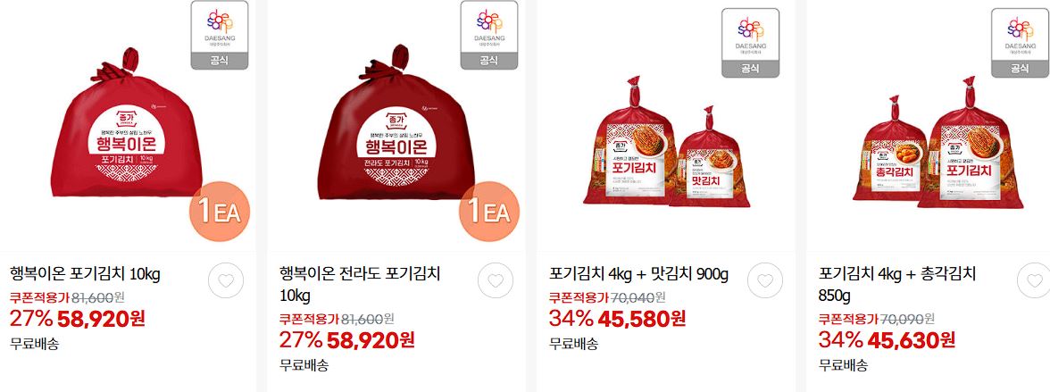 할인 품목 : 김치, 만두, 카레 등