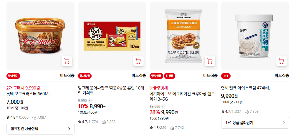 할인 품목 : 가공식품, 아이스크림, 음료 등