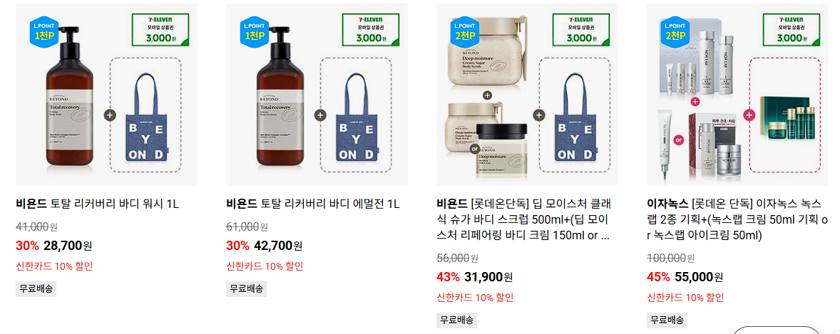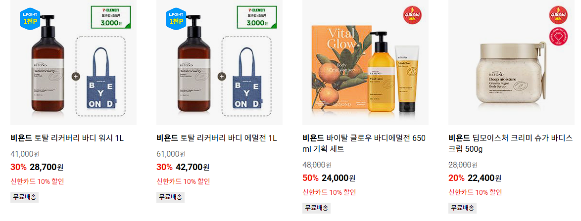 할인 품목 : 바디워시, 샴푸, 에멀전 등