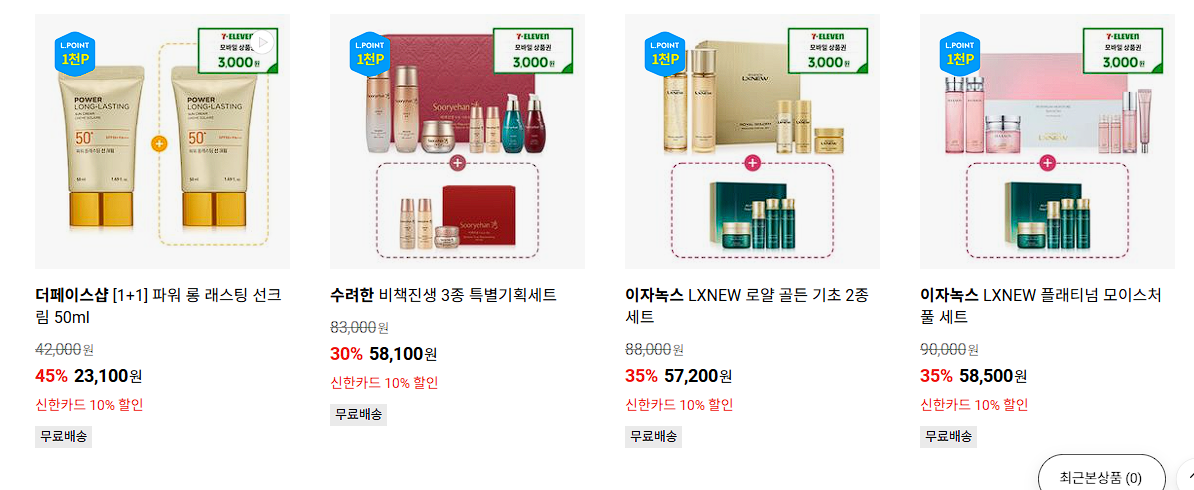LG생활건강 다양한 제품을 할인 판매하네요.