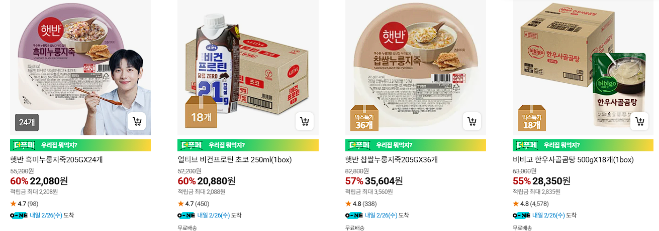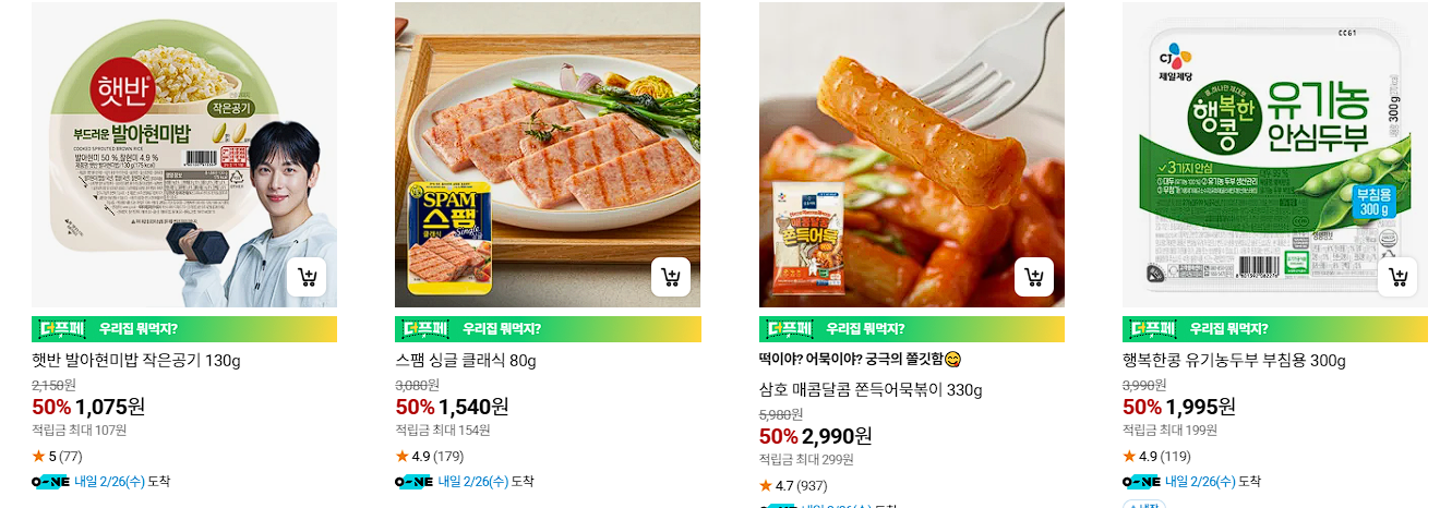 할인 품목 : 빅소시지, 햇반, 만두, 수프 등