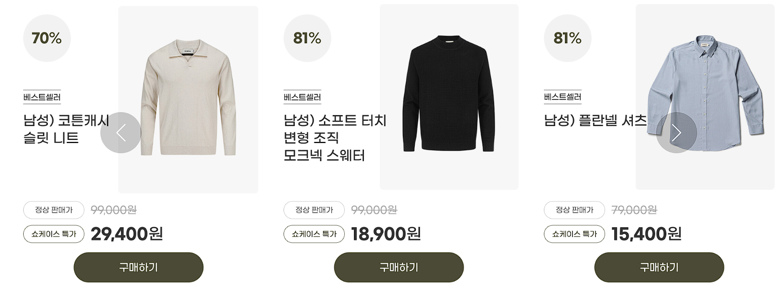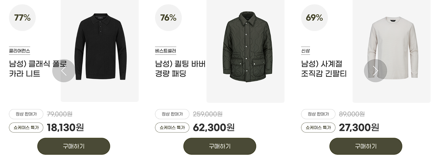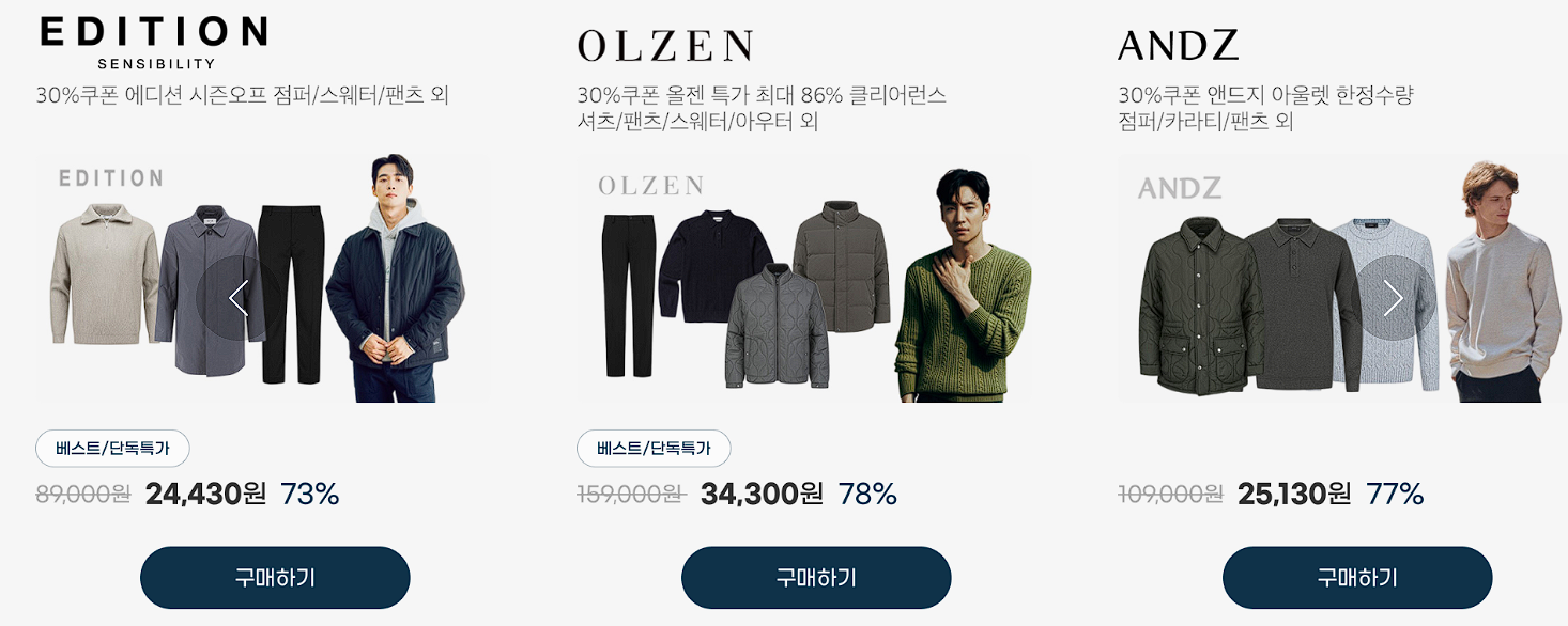 할인 품목 : 자켓, 티셔츠, 팬츠 등