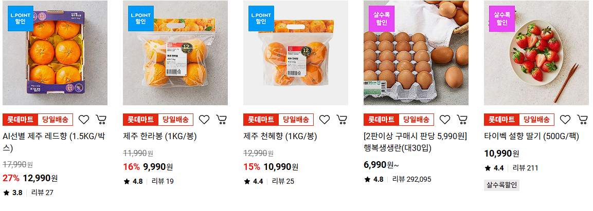롯데마트 다양한 제품을 할인 판매하네요.