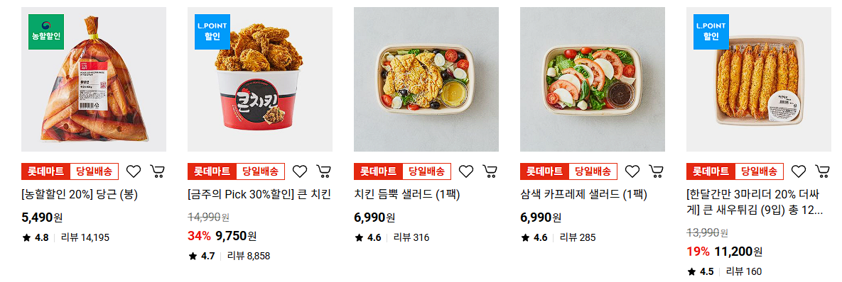 롯데마트 다양한 제품을 할인 판매하네요.