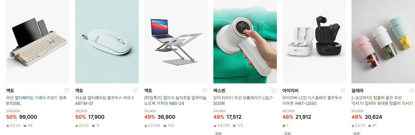 할인 품목 : 마우스, 이어폰, 충전기 등
