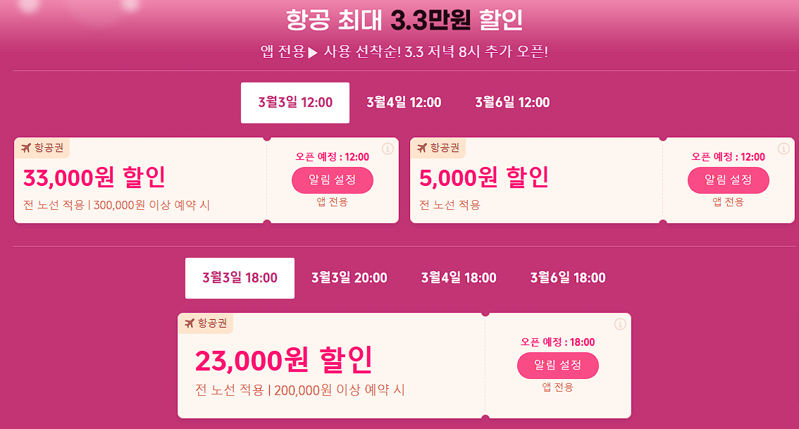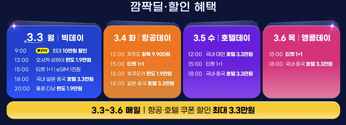 할인 품목 : 항공권, 숙박업소 등