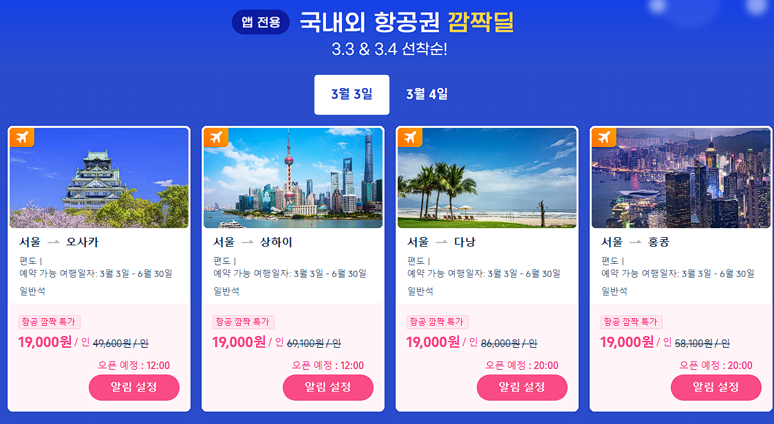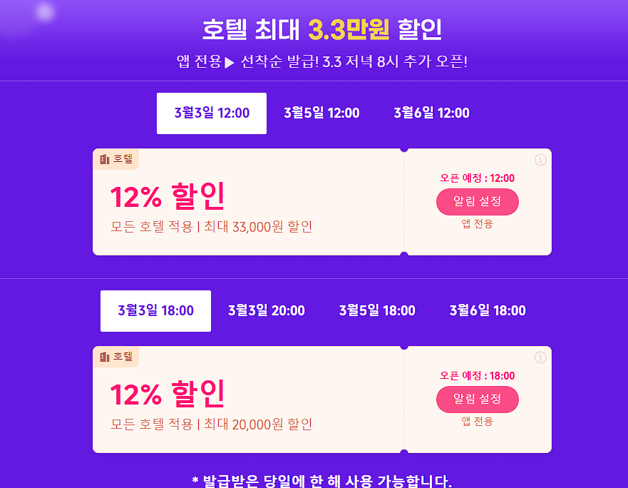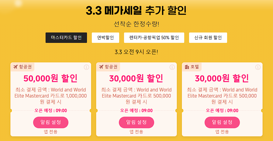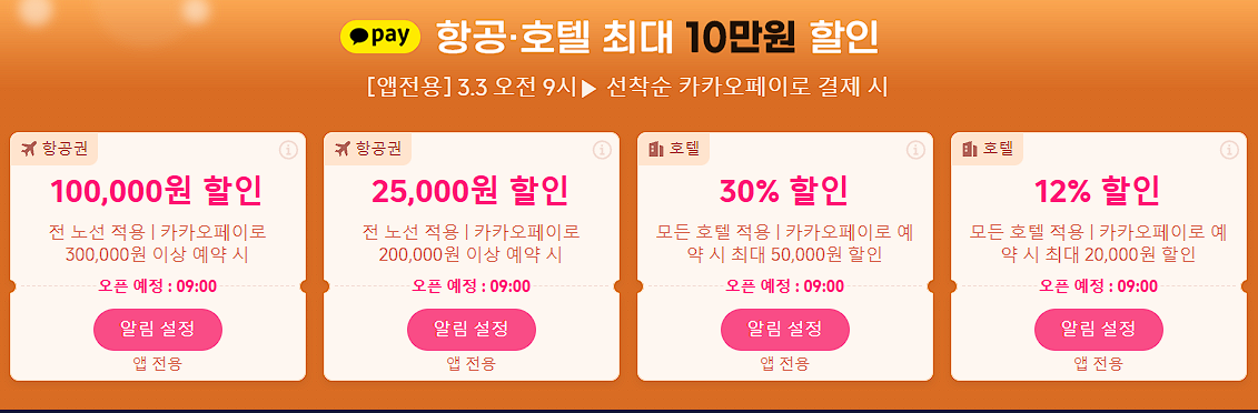 할인 품목 : 항공권, 숙박업소 등