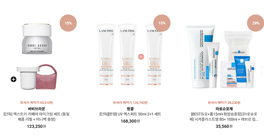 할인 품목 : 스킨, 파운데이션, 선크림 등