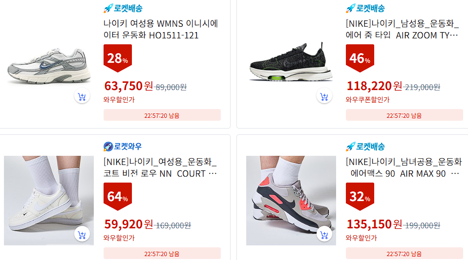 할인 품목 : 운동화, 티셔츠, 가방 등