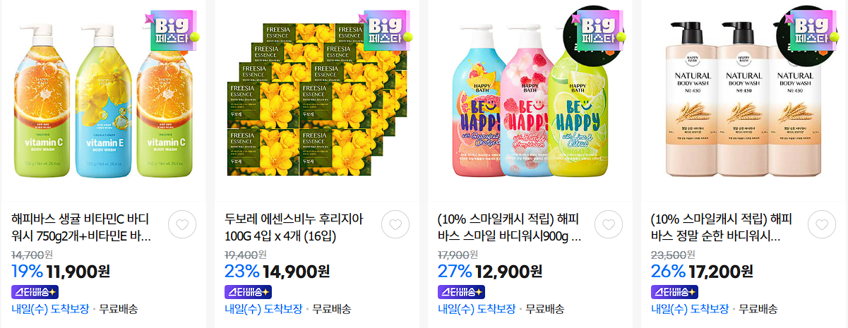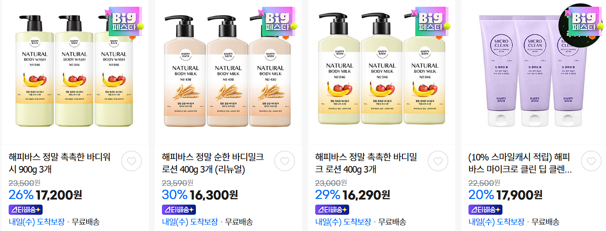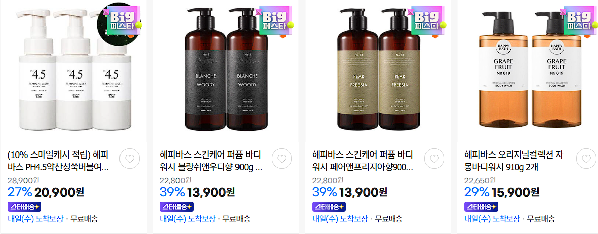 해피바스 다양한 제품을 할인 판매하네요.