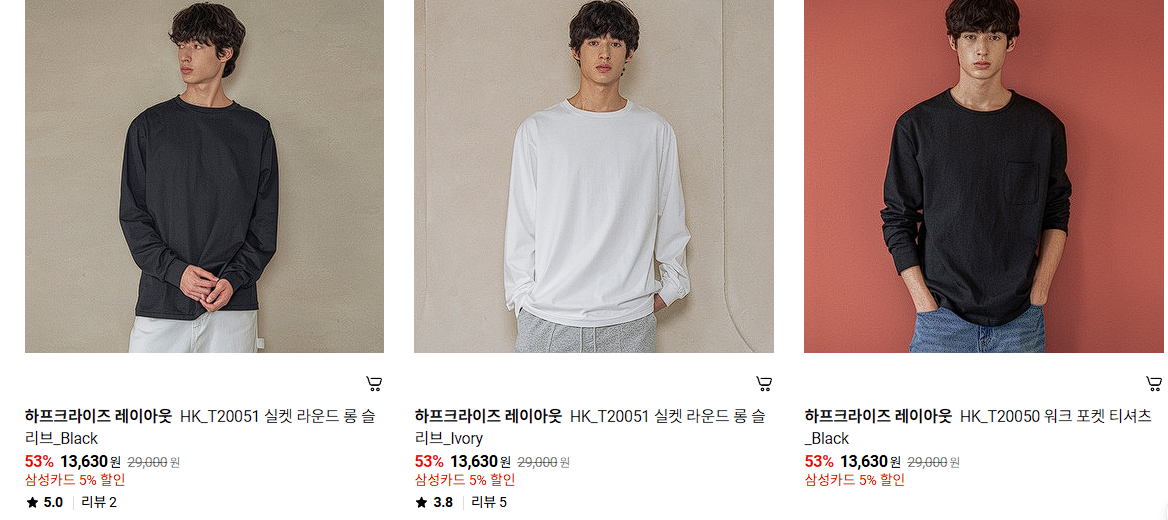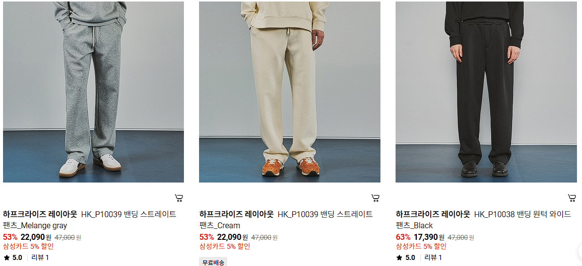 하프크라이즈 레이아웃 다양한 제품을 할인 판매하네요.