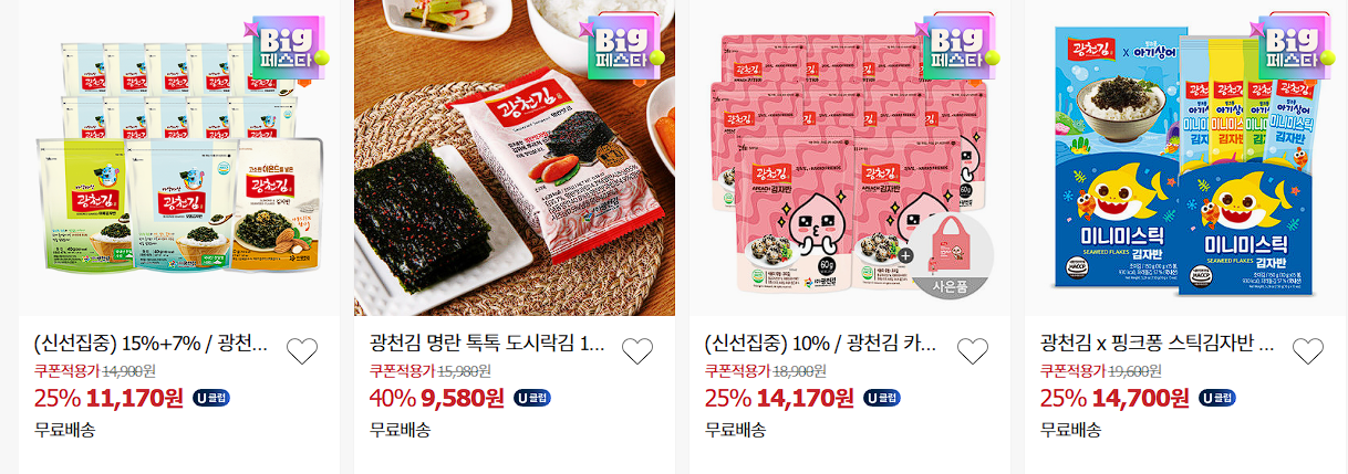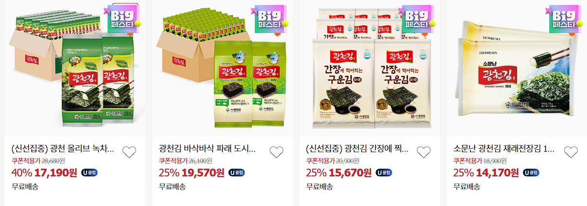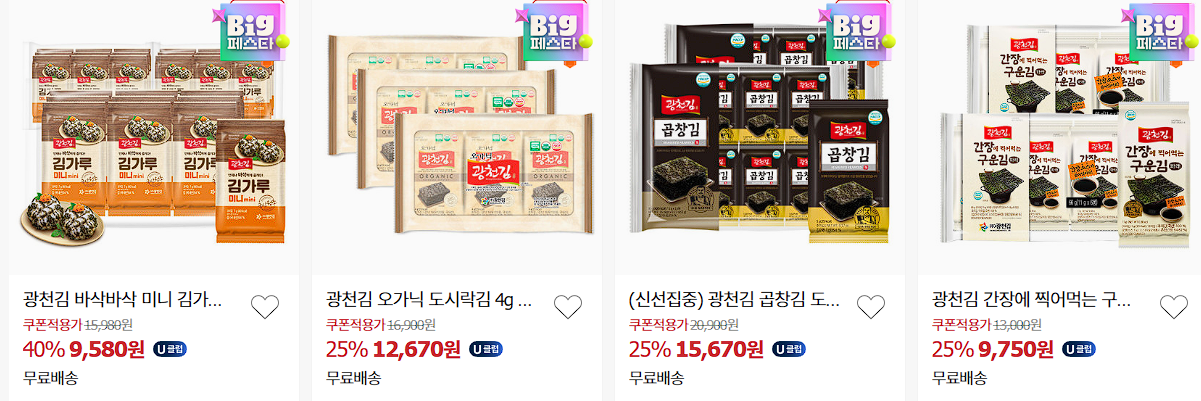 광천김 다양한 제품을 할인 판매하네요.