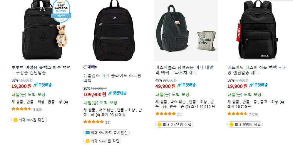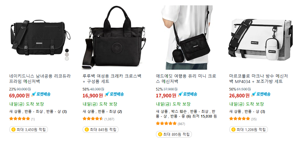 할인 품목 : 백팩, 서류가방, 크로스백 등