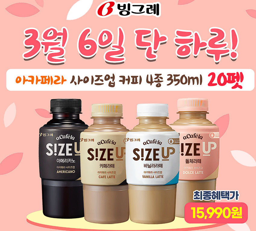 빙그레 아카페라 사이즈업 4종 350ml 20개 할인 정보 [링크]