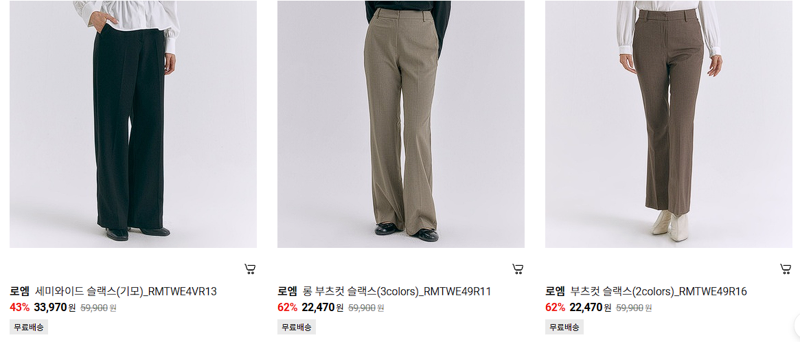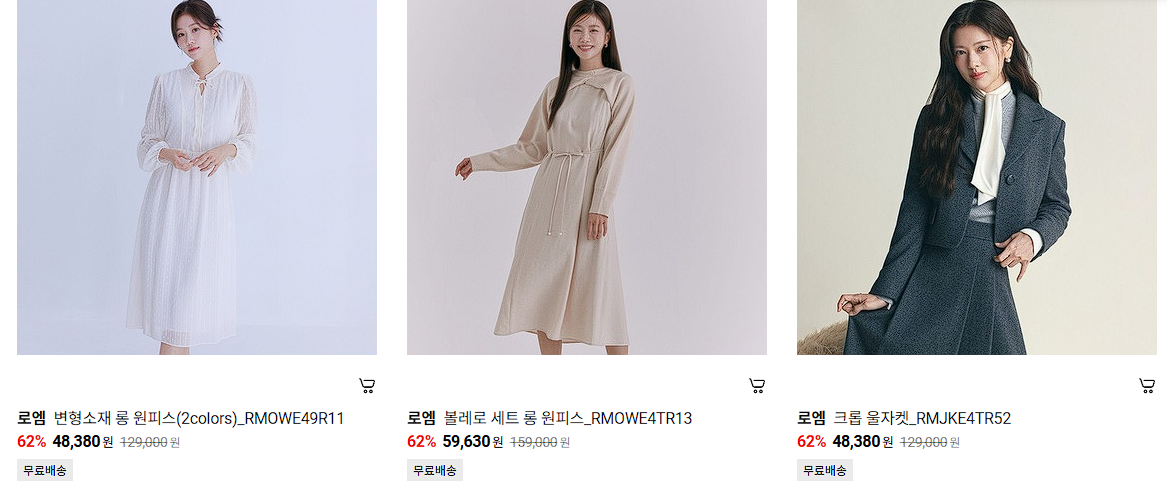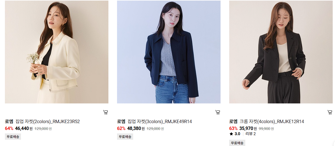 할인 품목 : 자켓, 원피스, 팬츠 등