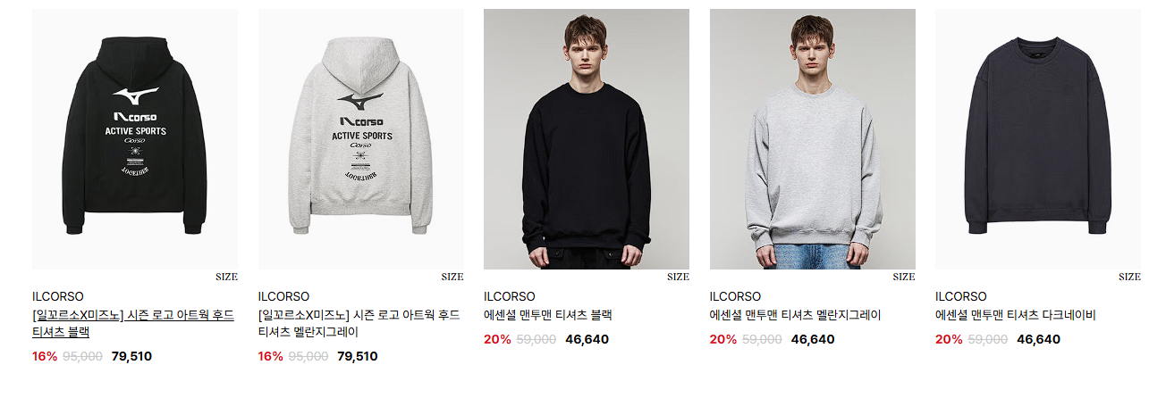 일꼬르소 다양한 제품을 할인 판매하네요.