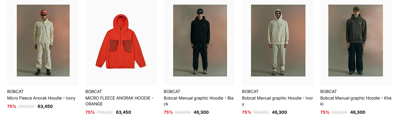 할인 품목 : 후드티, 자켓, 모자 등