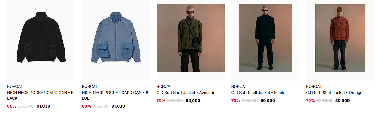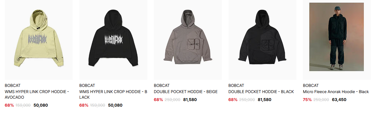 할인 품목 : 후드티, 자켓, 모자 등