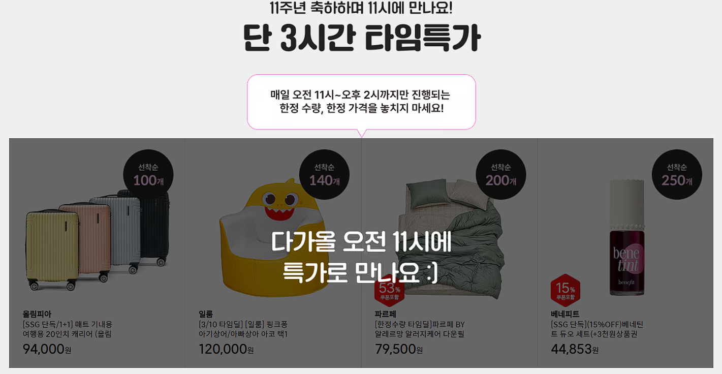 매일 오전 11시 ~ 오후 2시 타임특가