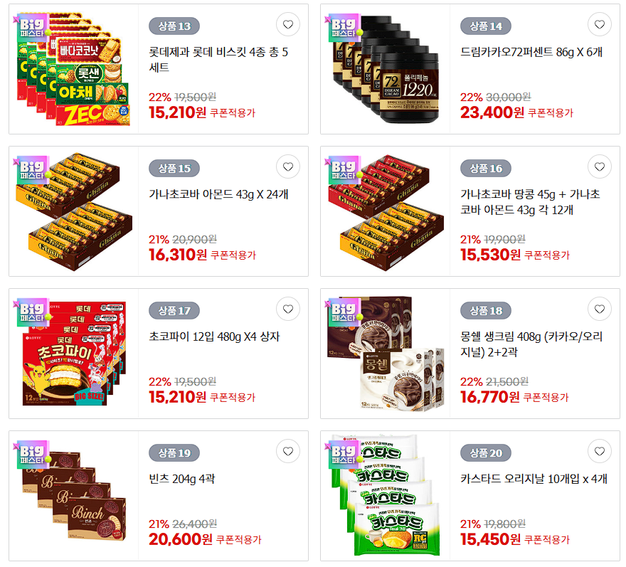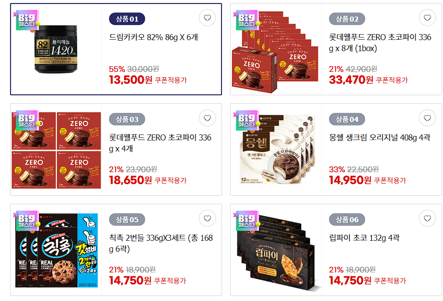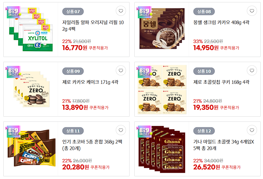 할인 품목 : 드림카카오, 칙촉, 초코파이 등