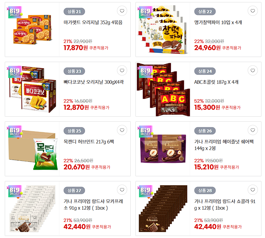 롯데웰푸드 다양한 제품을 할인 판매하네요.