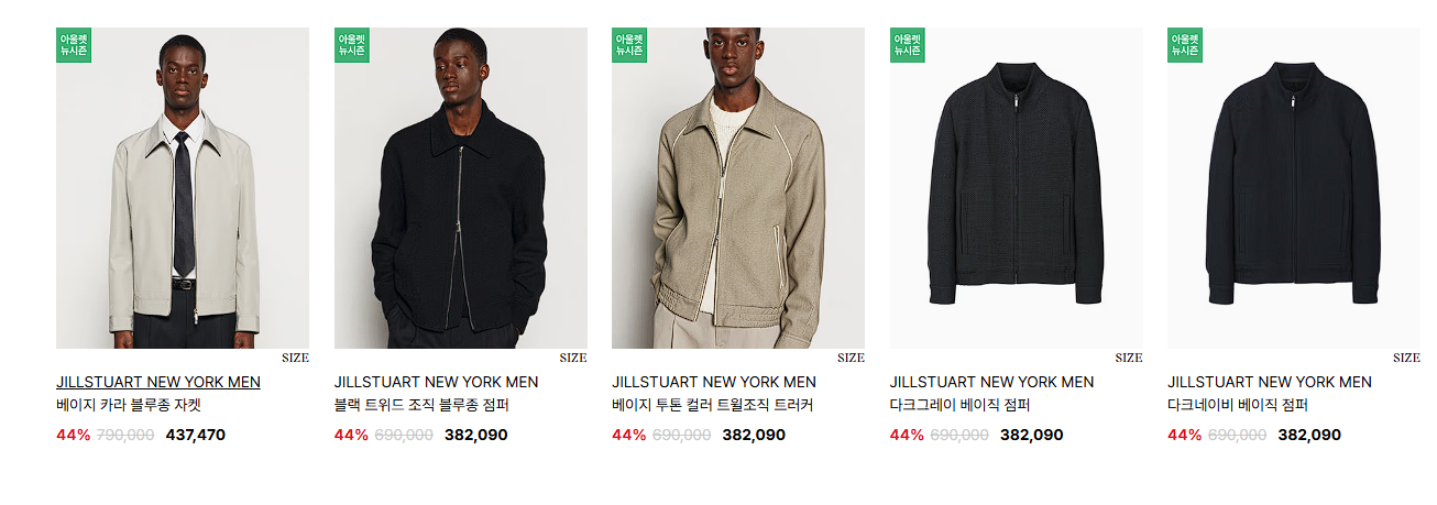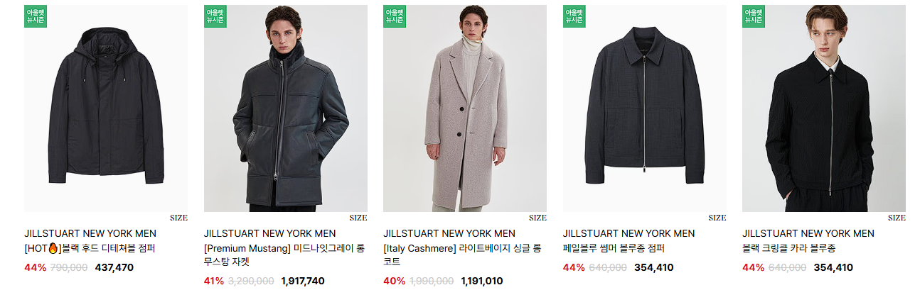할인 품목 : 자켓, 티셔츠, 원피스 등