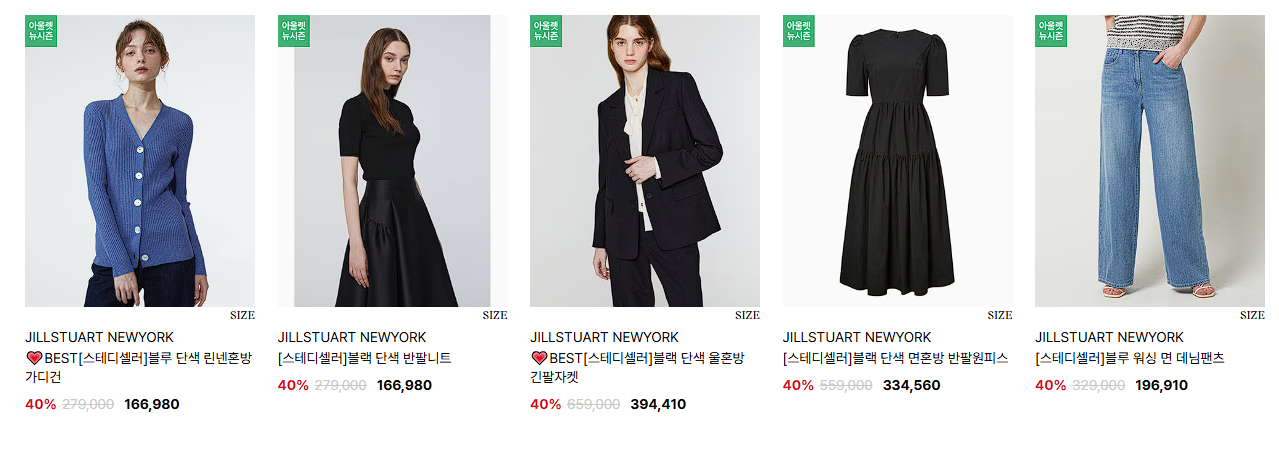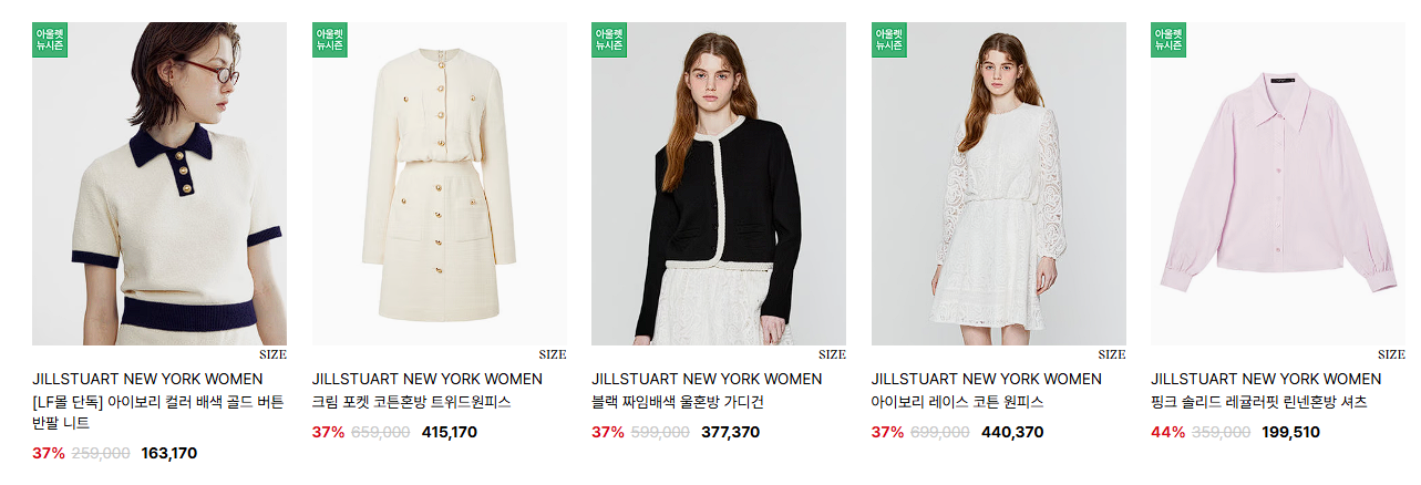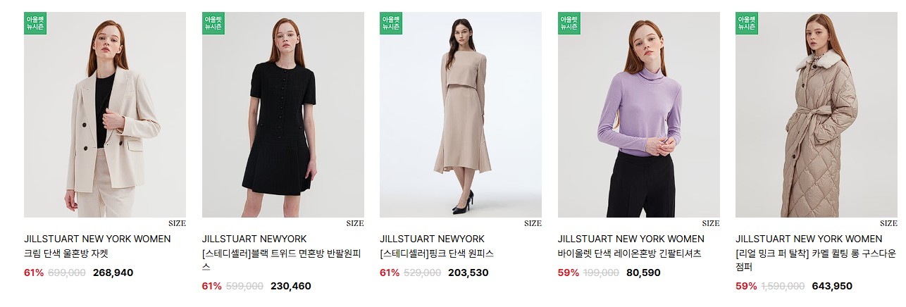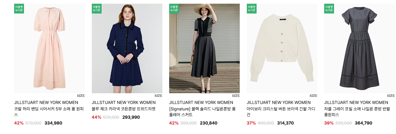 할인 품목 : 자켓, 티셔츠, 원피스 등