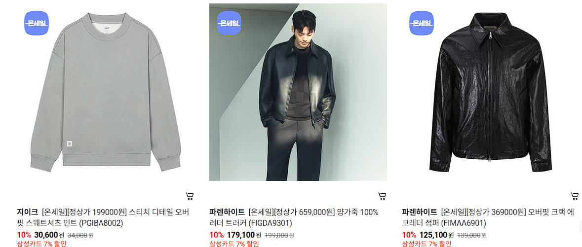 할인 품목 : 자켓, 셔츠, 니트, 팬츠 등
